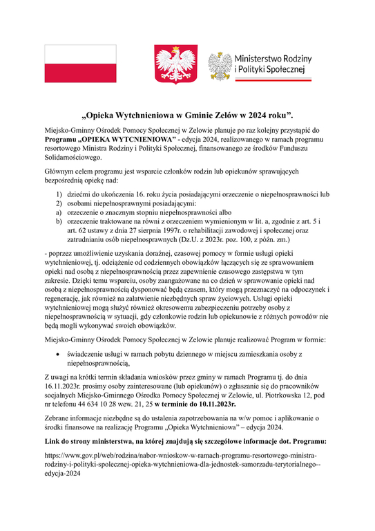 Dokument wytworzony przez: Kierownik Miejsko-Gminnego Ośrodka Pomocy Społecznej w Zelowie